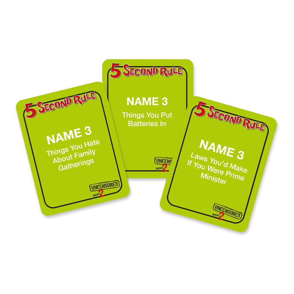 - Contents: 150 2-sided Question Cards 5 Second Spiral Timer Rules.
