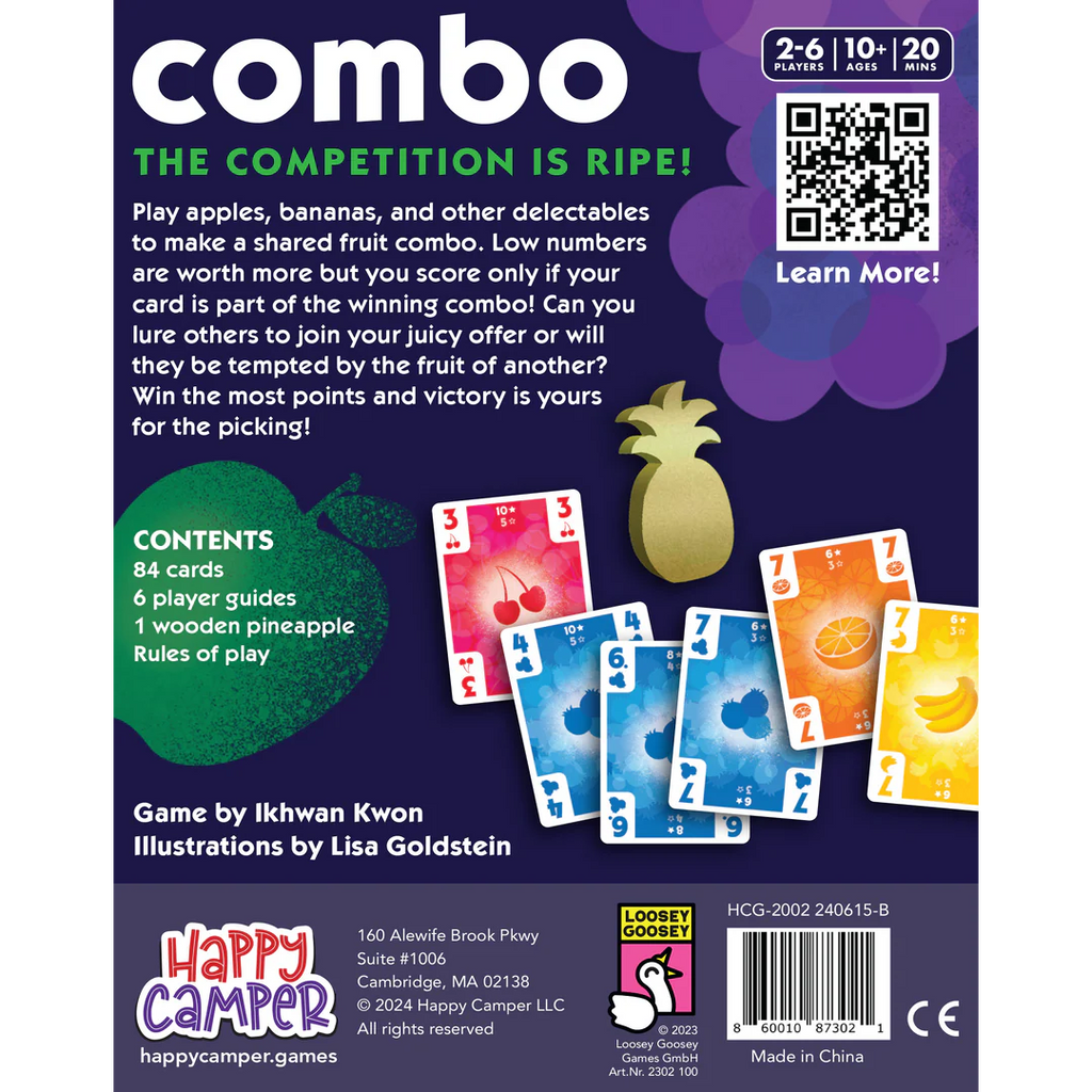 The competition is ripe! Play apples, bananas, cherries, and more to make a shared fruit feast. Low numbers are worth more but you score only if your card is part of the winning combo! Can you lure others to follow your juicy offer, or will they be tempted by the fruit of another? Win the most points and victory is yours for the picking!