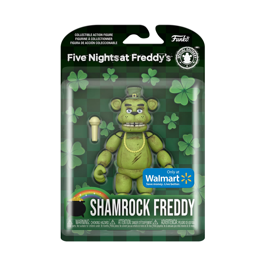 Will your FNAF collection survive after the Shamrock Freddy action figure steps amidst the other animatronic figures? Collectible action figure has multiple points of articulation, is green and is approximately 14 centimeters tall.