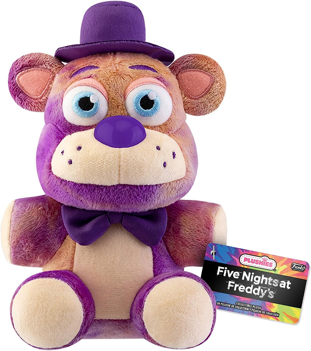 Survive the night at Freddy Fazbear’s Pizza with a Five Nights at Foxy's Funko Plush Tie-Dye Freddy. Tie-Dye Freddy is an adorable plush figure, ready with his arms open wide for a big hug. Catch him before he moves! Collectible plush is 18cm tall tall.