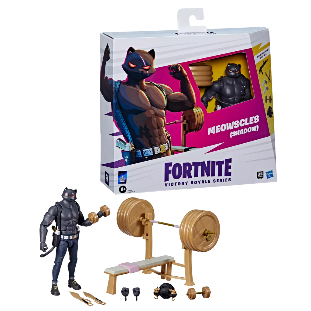 Includes Fortnite Victory Royale Series Meowscles (Shadow) figure and 9 accessories.