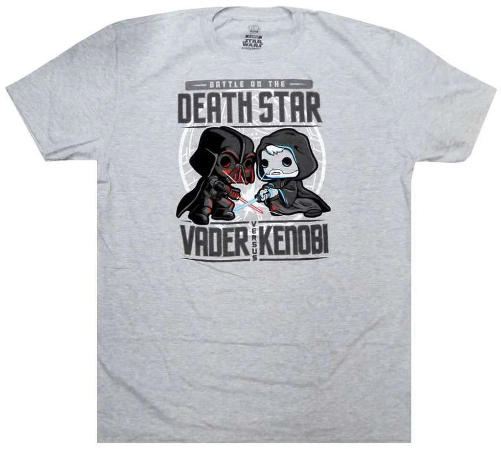 Star Wars Battle on the Death Star Vader vs Kenobi Light Grey Unisex Short Sleeve high quality official Funko T-Shirt.Size: Adult Large