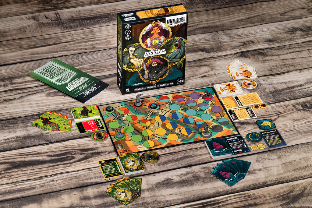 Good things come in threes. Unmatched is the critically acclaimed, best-selling game of tactical combat between unlikely opponents, and the Battle of Legends badge has always been the epitome of “unlikely”. In the final entry of the Battle of Legends set, four disparate heroes come together to see who reigns supreme: